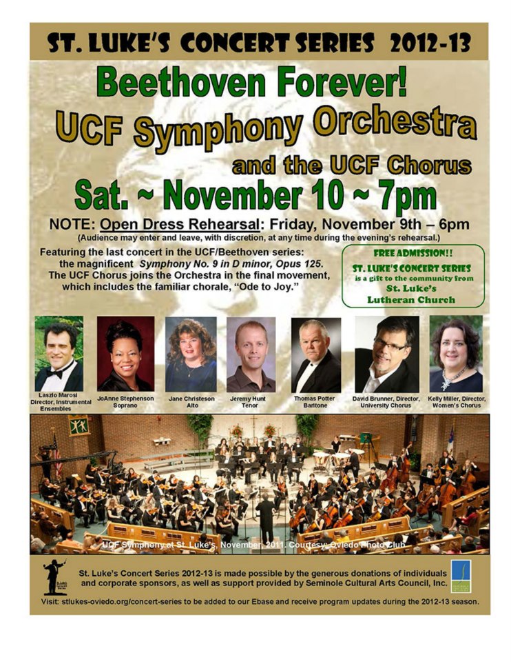Symphony Orchestra concert of Symphony Nr. 9 of L. v Beethoven, in the Resurrection Catholic Church. 1211 Winter Garden Vineland Rd., Winter Garden